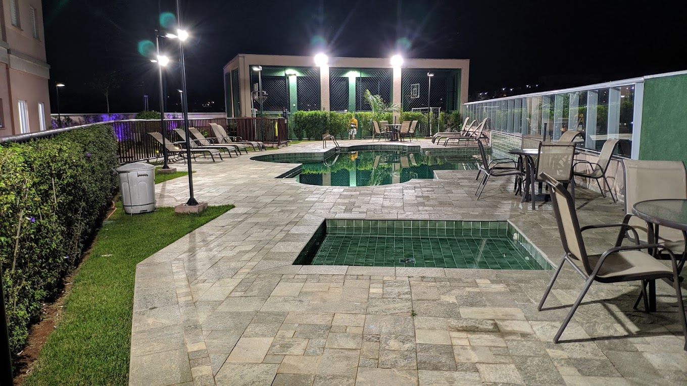 A vaga de garagem é coberta e o condomínio oferece um lazer completo para toda a família: brinquedoteca, academia, sauna, salão de jogos, piscinas adulto e infantil, pet place, churrasqueira com forno de pizza e até um mini mercado, garantindo conveniência sem precisar sair de casa.